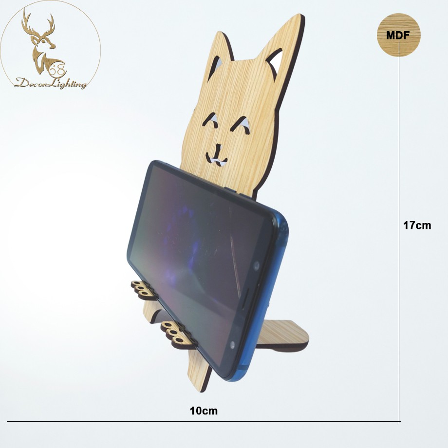 Giá , đế đỡ điện thoại bằng gỗ hình chú mèo ngộ nghĩnh dễ thương GD137 là phụ kiện nhiều tiện ích phục vụ đời sống hàng ngày.- Chất liệu gỗ ép cứng cáp, chắc chắn, giúp bạn cố định điện thoại tại một vị trí, tạo thói quen gọn gàng, ngăn nắp cũng như dễ tìm kiếm khi cần sử dụng.