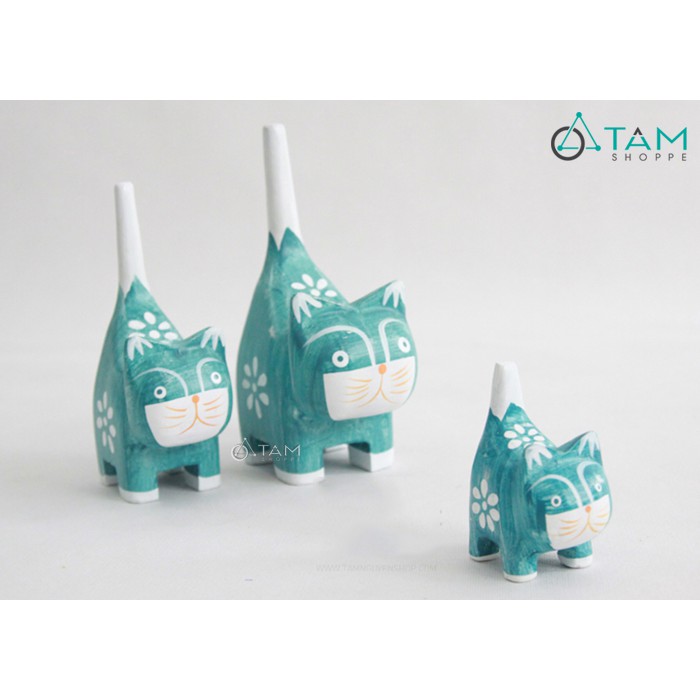 Những chú mèo gỗ trang trí thường được yêu chuộng nhất, vì Mão thuộc hành Mộc, đó là lý do khi chọn tượng Mèo phong thủy thì nên chọn Mèo gỗ. Những chú mèo gỗ được chế tác nhiều hình dáng cách điệu khác nhau như Mèo gỗ ngồi câu cá, mèo gỗ cầm bảng welcome, mèo gỗ vẫy tay chiêu tài lộc, mèo gỗ che dù, mèo gỗ đuôi chuông...>>>CHI TIẾT SẢN PHẨM: