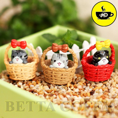 Mèo Trong Giỏ Làm Tiểu Cảnhchất liệu : nhựa