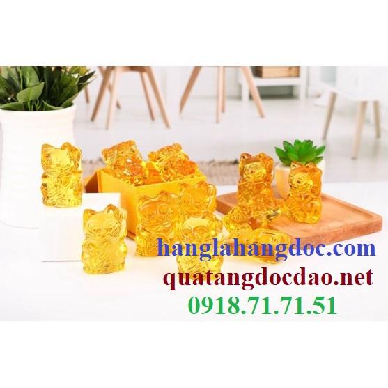 Mèo vẫy tay thần tài pha lê (cao 7cm) biểu tượng của sự tài lộc & hưng thịnh