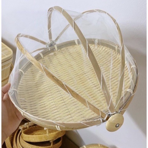 Mẹt tre lồng bàn, Khay đậy thức ăn có màn che tránh ruồi muỗi, bụi bặm, lồng bàn tiện, bảo quản đồ ăn, home decor