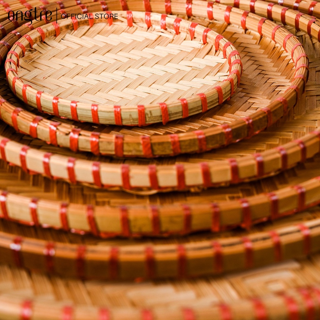 Nhà cửa & Đời sống > Dụng cụ nhà bếp > Thớt || Mẹt tre thủ công ONGTRE 18cm-60cm, viền đỏ và viền mây phục vụ nhà hàng, trang trí [Bán buôn/sỉ]Còn hàng