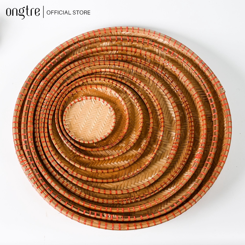 Mẹt tre thủ công ONGTRE 18cm-60cm, viền đỏ và viền mây phục vụ nhà hàng, trang trí [Bán buôn/sỉ]