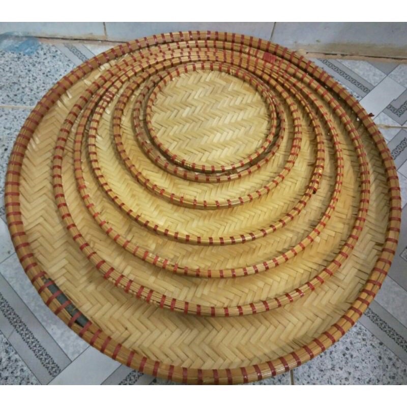 Nhà cửa & Đời sống > Bộ đồ bàn ăn > Khay, tấm lót bàn ăn || Mẹt tre viền đỏ, đựng món ăn Việt, đan thủ công (D:15,18,20,25,30,35,40,45,50,60cm)Còn hàng