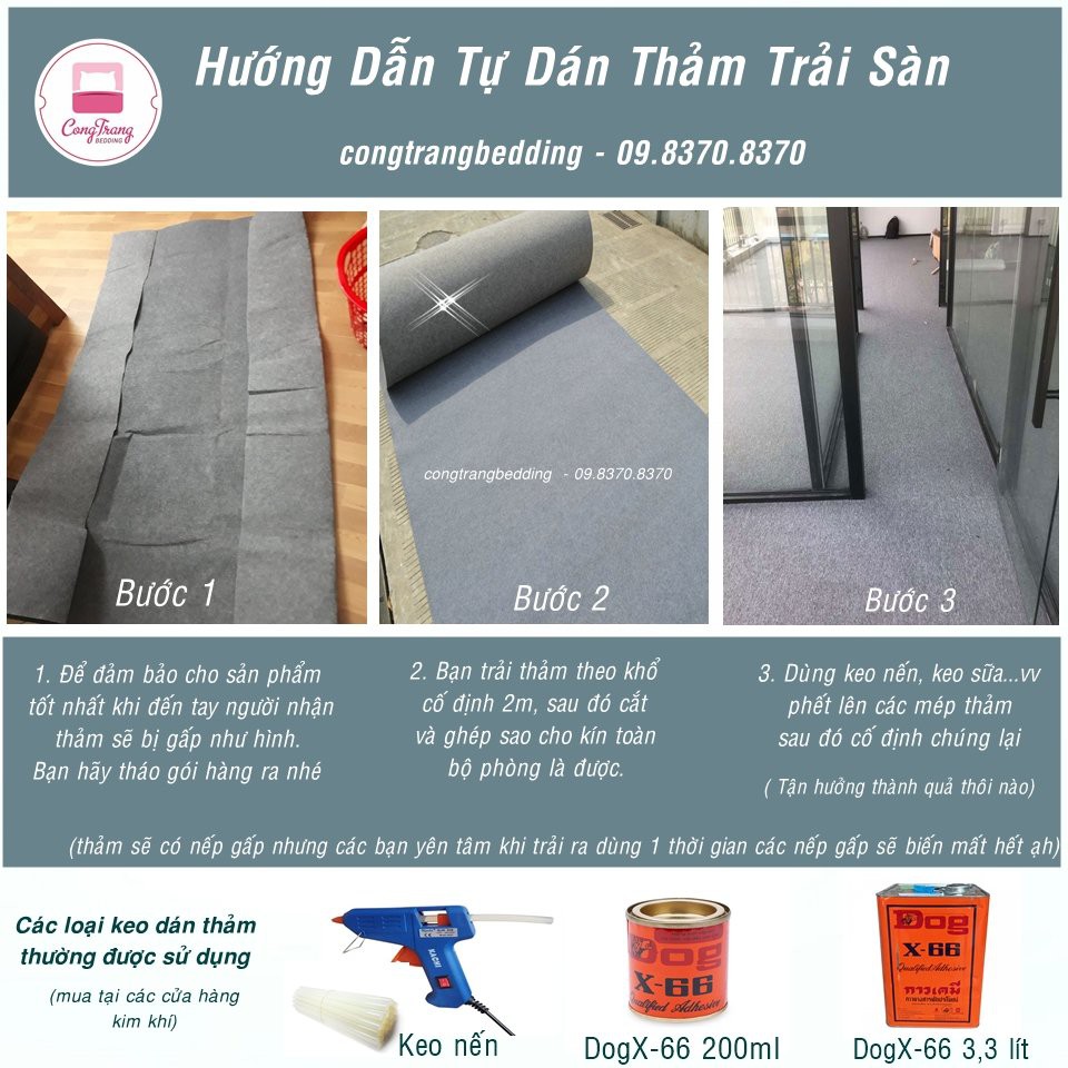 Độ dày : Đối với thảm loại dày độ dày trung bình 3 mm tương đương 0.25kg /1 mét vuông