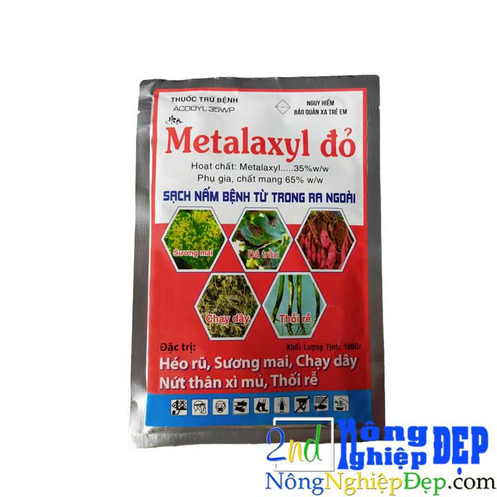 Metalaxyl đỏ là thuốc trừ bệnh ACODYL. với hoạt chất metalaxyl chuyên trị các bệnh héo rũ, sương mai,thối rễ , nứt thân, xi mủ vv.vv♦ Quy Cách: Gói 100g
