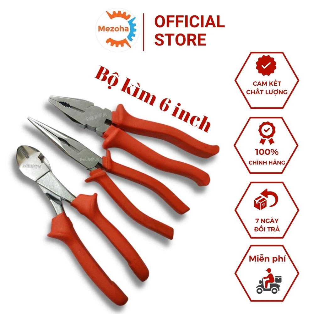 Nhà cửa & Đời sống > Dụng cụ & Thiết bị tiện ích > Dụng cụ > Kìm || Mezoha | Combo Bộ Kìm Cắt Kìm Điện Kìm Nhọn 6 Inch Meinfa Chống Rỉ Cao Cấp Lưỡi Bén Độ Cứng CaoCòn hàng