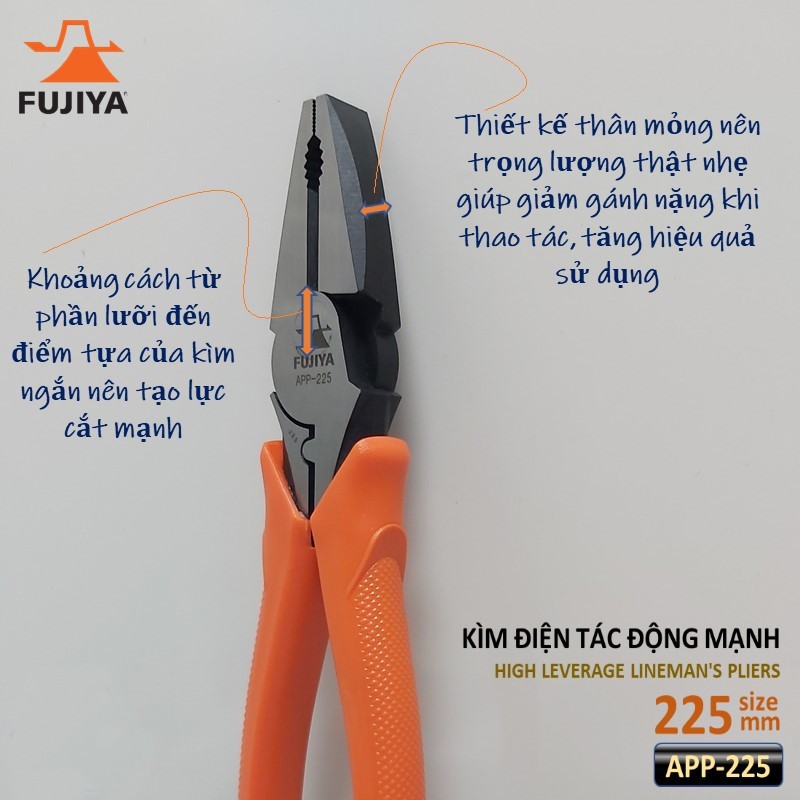 KÌM ĐIỆN TÁC ĐỘNG MẠNH FUJIYA 9/225mm APP-225 là đồ nghề sửa xe và cũng là đồ nghề sửa chữa không thể thiếu trong thùng đồ nghề.