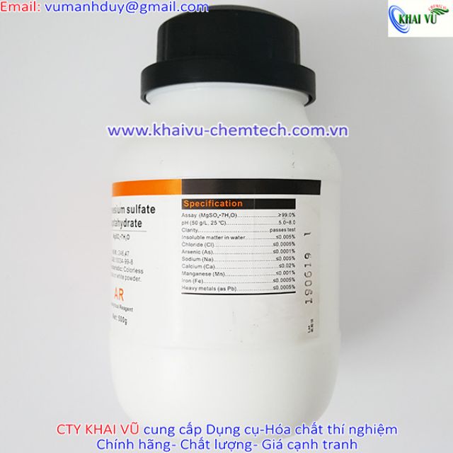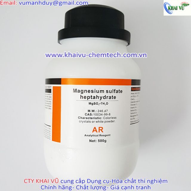 MgSO4.7H2O Magnesium Sulfate Heptahydrate 500g Magie sunphat 10034-99-8 MgSO4===> Quý khách hàng cứ yên tâm đặt hàng tại công ty KHAI VŨ và sẽ không phải lo lắng về chất lượng.