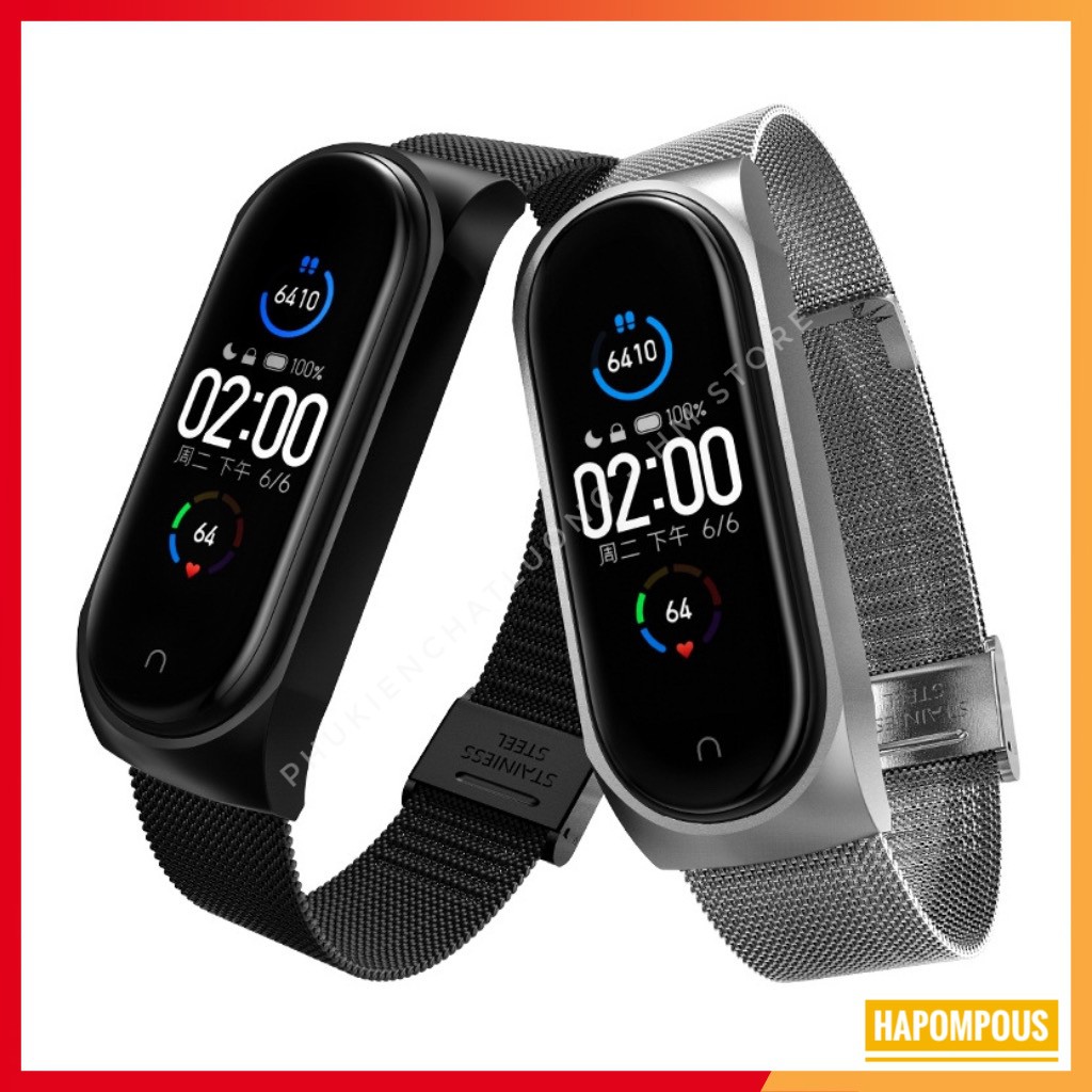 Mi band 5 - Dây đeo kim loại mắt nhỏ khóa bấm Xiaomi Miband 5