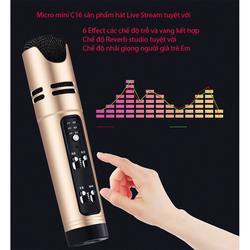 👉 Mic C16 livestream thu âm có độ nhạy cao và tối ưu chíp xử lý cho khả năng thu âm tốt hơn, hát nhẹ hơn và âm thanh hay hơn các thế hệ micro trước