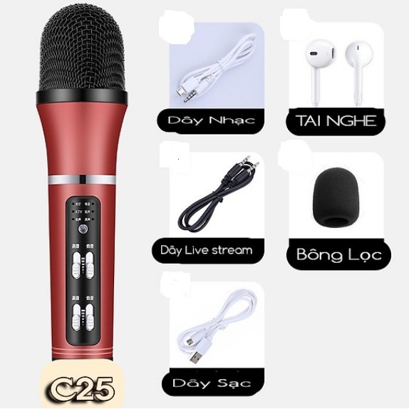 Mic C25 lấy nhạc buetooth, live stream thu âm cao cấp đa năng giả giọng đầy đủ phụ kiện tai phone