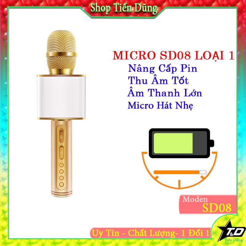 Thiết Bị Âm Thanh > Micro thu âm || MIC CẦM TAY KARAOKE SD08 MIC BLUETOOTH HÀNG CHUẨNCòn hàng