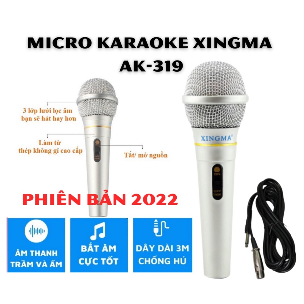 ✅ Microphone karaoke gia đình Xingma AK-319 có thiết kế truyền thống, dây cáp dài, đầu micro có bông lọc chống hơi ẩm và lưới thép bảo vệ.