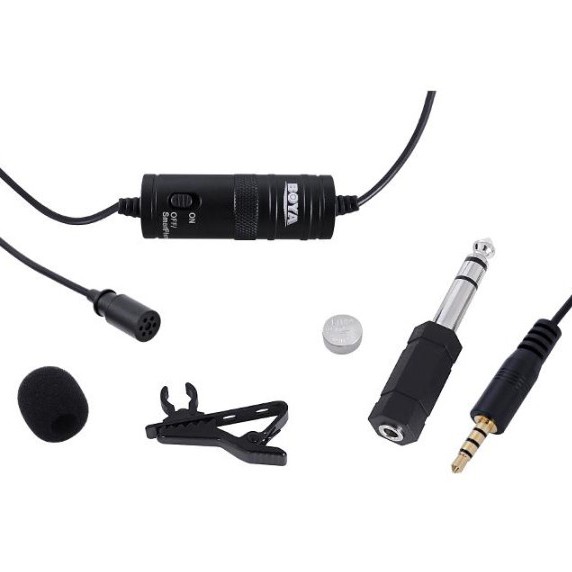 - Bộ sản phẩm đầy đủ: 1 x Micro BOYA BY-M1,01 x Dây nối dài 3,5M, 01 x pin LR44, 1 x túi đựng da, 1x jack âm thanh 3.5 mm , 1x jack âm thanh 6.5 mm.