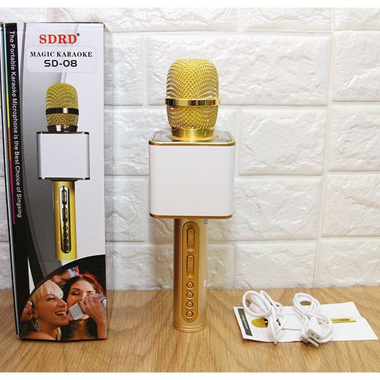 Mic hát karaoke bluetooth SD08 ( SD10 - SD17 - SD18 ) 3 in 1 loa to Mic Bass cực chuẩn, có khe thẻ nhớMic SD08 là phiên bản mới nhất của dòng micro Bluetooth Karaoke kèm loa thẻ nhớ đình đám trên thị trường. Đây là thiết bị giúp kết nối với điện thoại Smartphone thông qua sóng Bluetooth. Nhờ trang bị cả loa và mic trên cùng một sản phẩm nên chỉ cần mở một bản nhạc bất kì từ điện thoại là có thể phát trực tiếp ra loa, thỏa thích hát karaoke ngay tại chỗ với chất lượng âm thanh hay, to, rõ cực đỉnh.