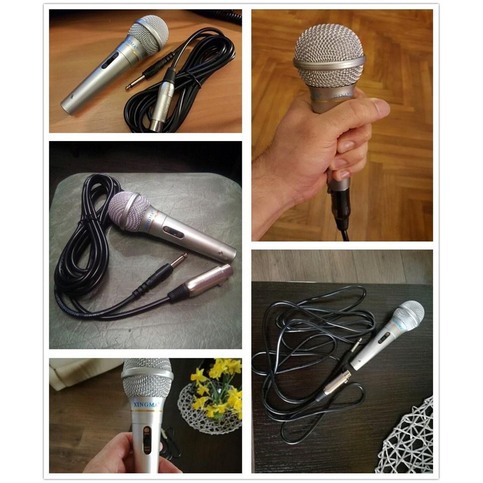- Microphone karaoke gia đình Xingma AK-319 có thiết kế truyền thống, dây cáp dài, đầu micro có bông lọc chống hơi ẩm và lưới thép bảo vệ.