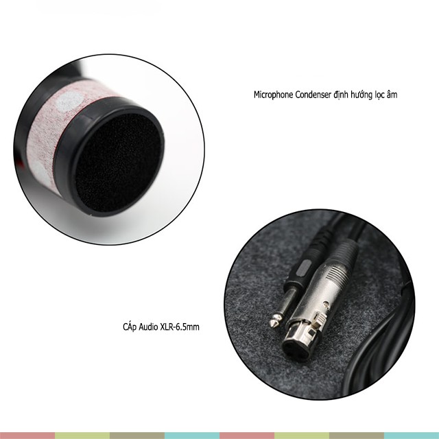 - Đầu micro dạng condenser định hướng, tránh lặp âm vọng từ loa.