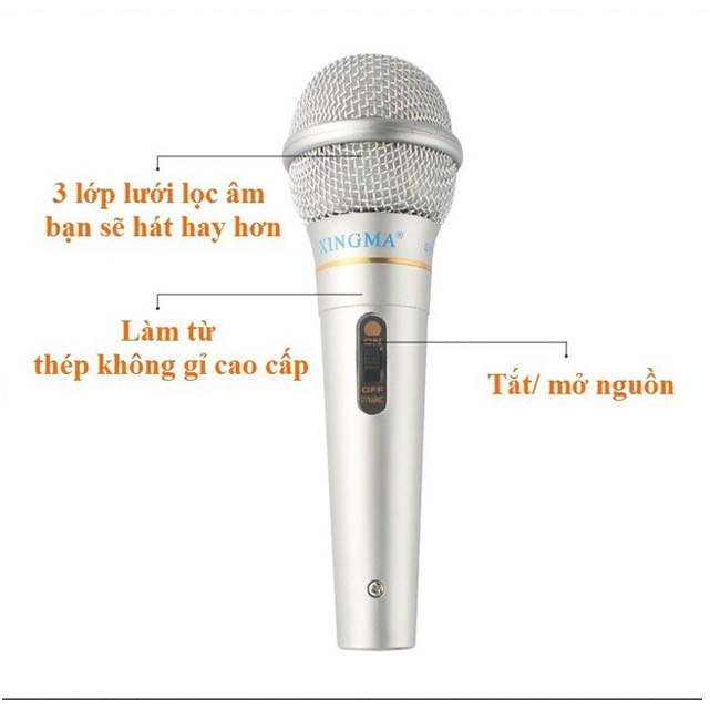 Thông số kĩ thuật Mic hát Karaoke gia đình Xingma Ak-319 âm thanh trong trẻo sống động, có màng lọc tạp âm, dây dài 3m: