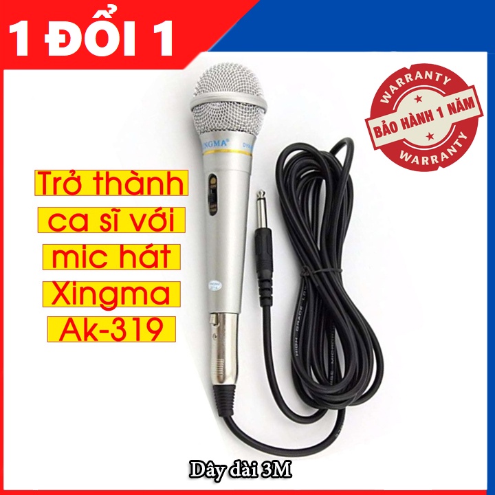 Thông số kĩ thuật Mic hát Karaoke gia đình Xingma Ak-319 âm thanh trong trẻo sống động, có màng lọc tạp âm, dây dài 3m: