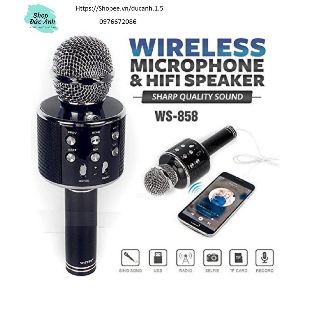 Thiết Bị Âm Thanh > Micro thu âm || Mic Hát Karaoke Kèm Loa Bluetooth WS-858 Đa Năng (Giao Màu Ngẫu Nhiên )Còn hàng