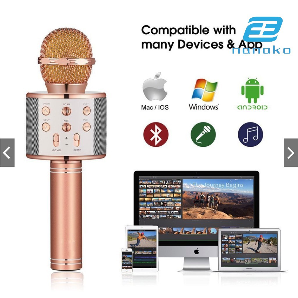 Mic Hát Karaoke Kèm Loa Bluetooth WS-858 Đa NăngChuyên nghiệp nút điều chỉnh Bass Treble. Khối lượng CHA Reverb có thể được điều chỉnh bằng micro. Không dây Bluetooth Micro và loa, 2 trong 1, không kết nối thêm để làm việc độc lập. Đầu micro có ba giảm tiếng ồn xử lý, hiệu quả hơn điểm nhấn xinh đẹp của bạn bằng giọng nói. Kết nối Bluetooth 4.0, có thể được ghép nối với các thiết bị có hỗ trợ Bluetooth Chất lượng âm thanh tuyệt vời với Echo-âm vang tác dụng Tất cả các ứng dụng của lý tưởng hát cho bài phát biểu âm thanh có thể được sử dụng như một loa bluetooth. Loại Bỏ tiếng ồn Khả năng tương thích, thích hợp cho IOS và Android điện thoại thông minh, máy tính bảng iPad Máy Tính, Bluetooth và như vậy. Đa năng: Loa Bluetooth, Hát karaoke, âm thanh xe hơi, âm nhạc, thu âm, các cuộc phỏng vấn, podcast và như vậy. Tất cả các lý tưởng giọng hát các ứng dụng có thể được sử dụng như loa Bluetooth. Mic này có thể ghi âm bài hát vào điện thoại của bạn và chia sẻ cho bạn bè của bạn. Vỏ kim loại bảo vệ và siêu bass Mất-ít âm thanh tạo ra một chất lượng cao trải nghiệm nghe. Biến dạng là ít hơn 0.5 phần trăm, giảm mất chất lượng âm thanh hiệu quả. Túi thời trang thiết kế, nó có thể được treo trên xe đạp hoặc lấy bằng tay, cho bạn thưởng thức âm nhạc mọi