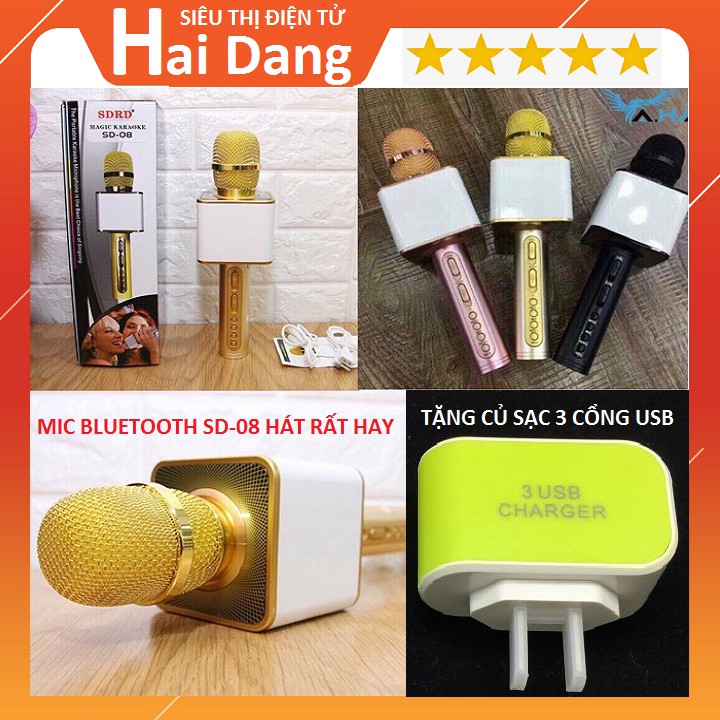 Thiết Bị Âm Thanh > Micro thu âm || Mic Hát Karaoke, Micro Bluetooth SD08 Tặng Củ Sạc 3 Cổng Sạc USB -Mic Hát Karaoke Kèm Loa Bluetooth Âm Thanh To Trầm ẤmCòn hàng