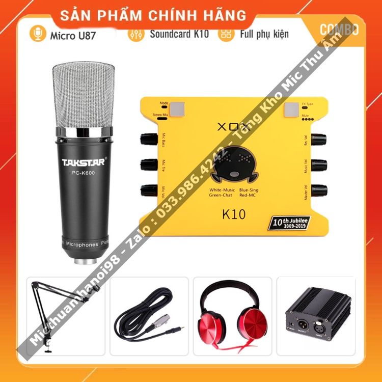 Bộ Mic Hát Livestream Sound Card XOX K10 2020 & Mic Takstar PC K600 . Chất Âm Cực Hay , Âm Thanh Sống Động