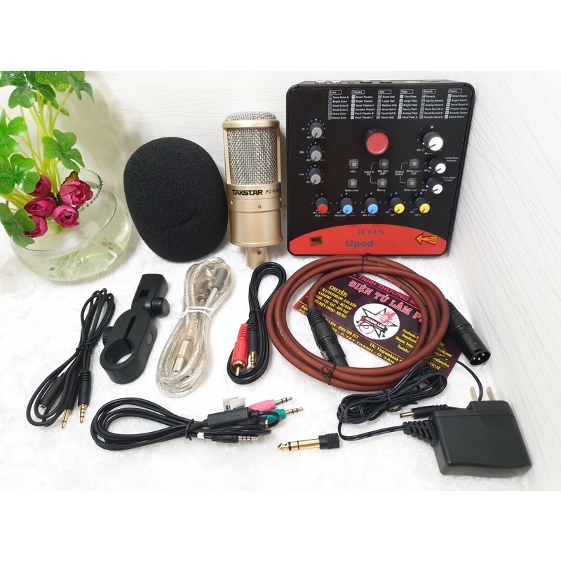 Combo mic thu âm Icon Upod Pro mic PC-K200 chân dây livestream MA2- Sound card icon upod pro hỗ trợ nguồn 48V.Trọn bộ livestream Taktar PC-K200 -Sound Card Icon Upod Pro gồm có: