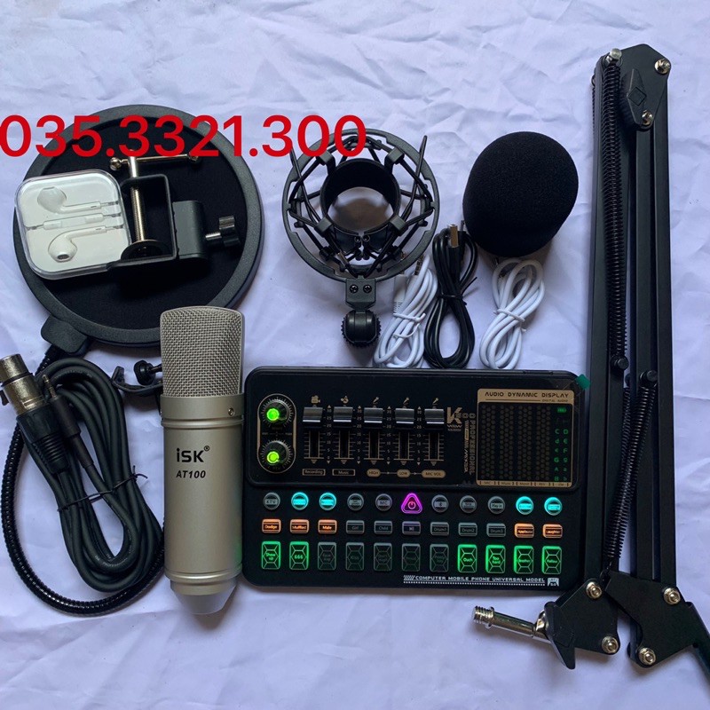 Bộ Mic Hát thu Âm livestream Online ISK AT100 Chính Hãng + Card Thu Âm K500 Mới Nhất kè