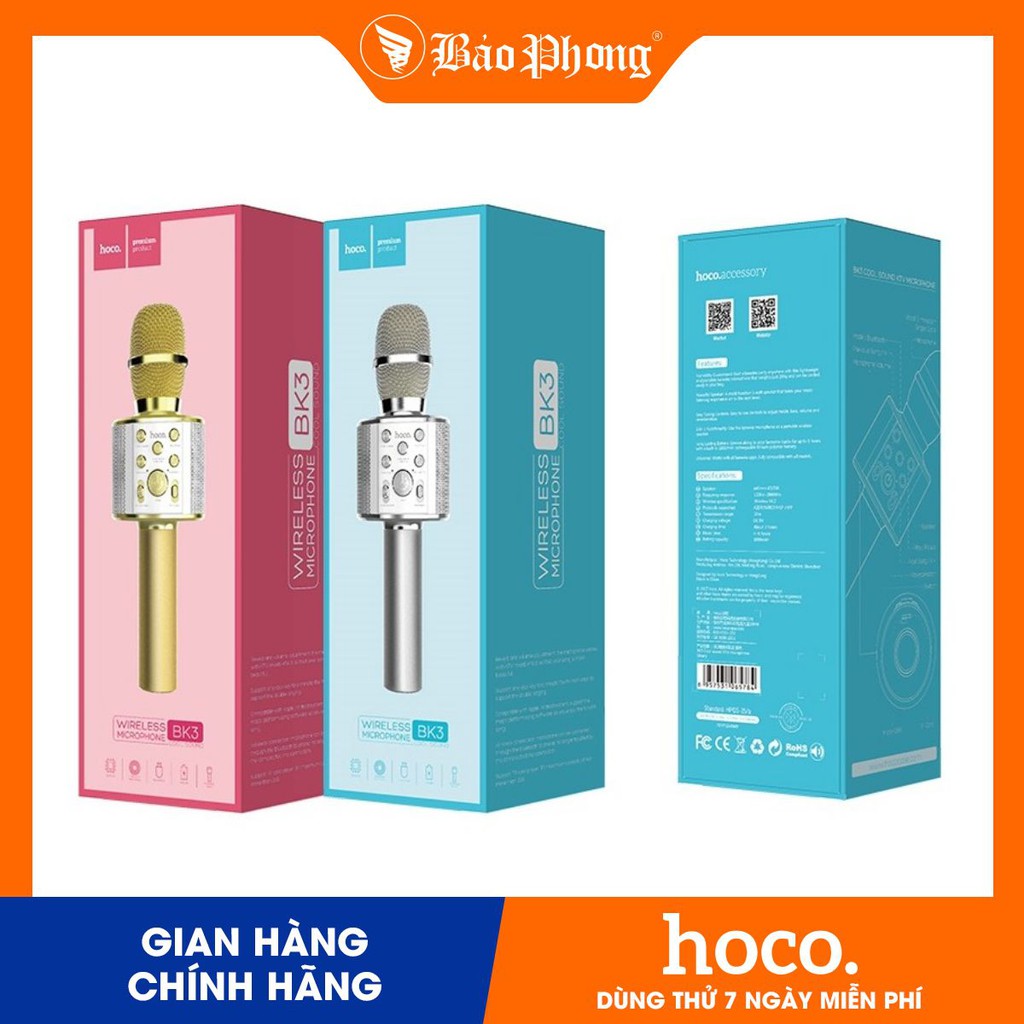 [Mã ELHACE giảm 4% đơn 300K] Mic Karaoke Hoco BK3 bluetooth hỗ trợ thẻ nhớ 32GB