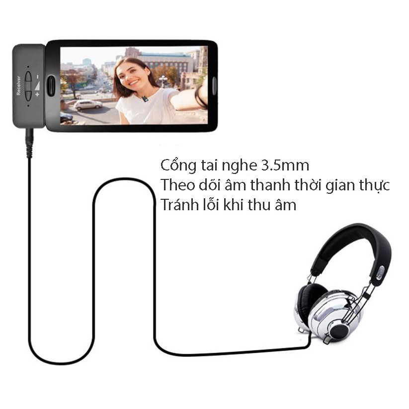 Receiver (bộ nhận tín hiệu) thiết kế thông minh, không cần pin (lấy nguồn từ điện thoại), không lo hết pin.