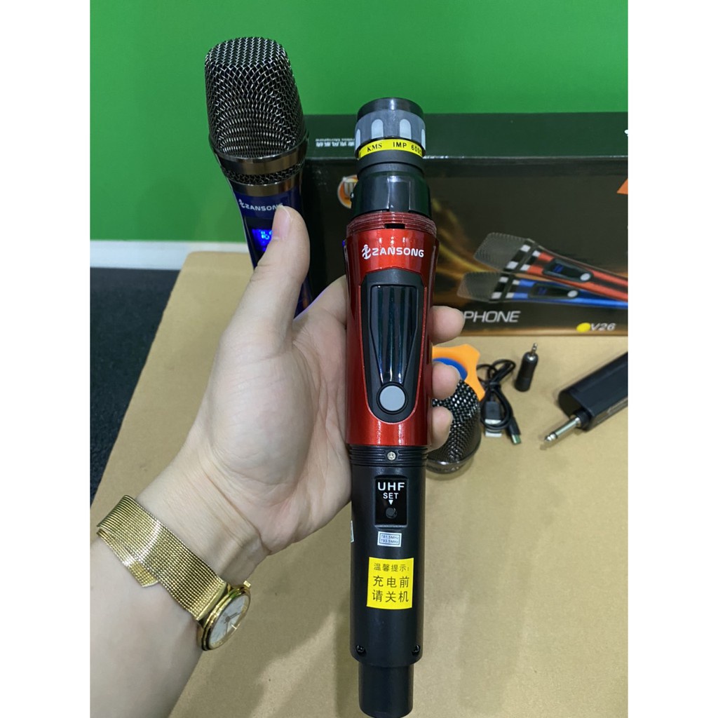 Mic Không Dây Cao Cấp ZANSONG V26. Có Thể Kết Nối Loa Kéo,Âm Ly,Mic Thu Âm. Tặng Kèm Pin Gắn Mic. Bảo Hành 12 Tháng