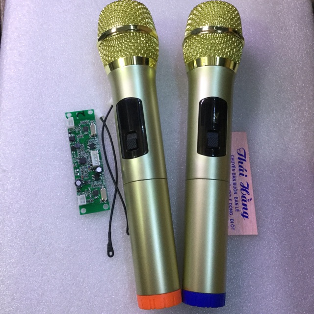 Bộ 2 Mic không dây cho loa kéo UHFMàu vàng nhôm ( mạch rời )