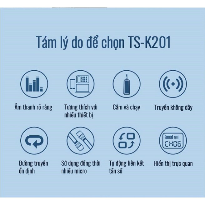 🎤 2. CẤU HÌNH NỔI BẬT CỦA MICRO KHÔNG DÂY TS-K201