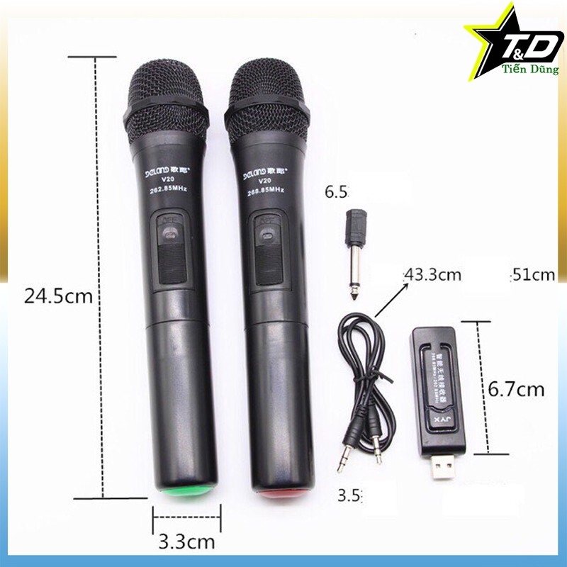 Mic không dây v20 cho tất các các loa và âm li có hỗ trợ micvới 2 cổng 3.5 và 6.5- Micro đa năng v20 hát bắt mic