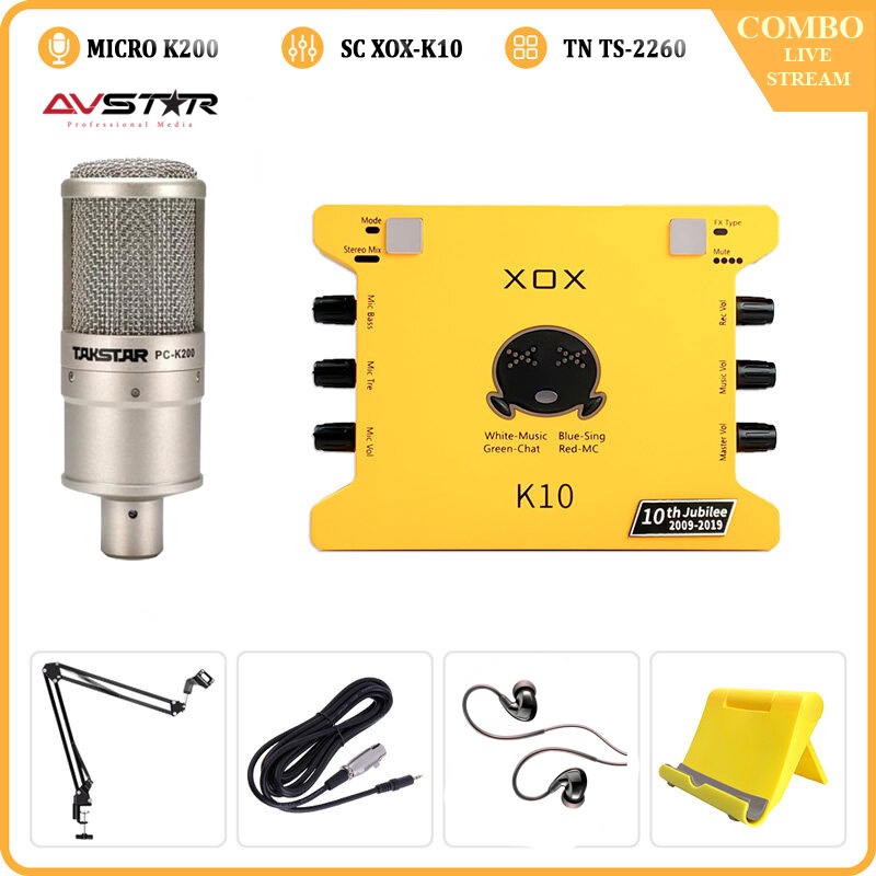 Bộ Mic Livestream Chính Hãng Đầy Đủ Sound Card XOX K10, Mic Takstar PC-K200, Tai Nghe Takstar TS-2260 & Phụ Kiện