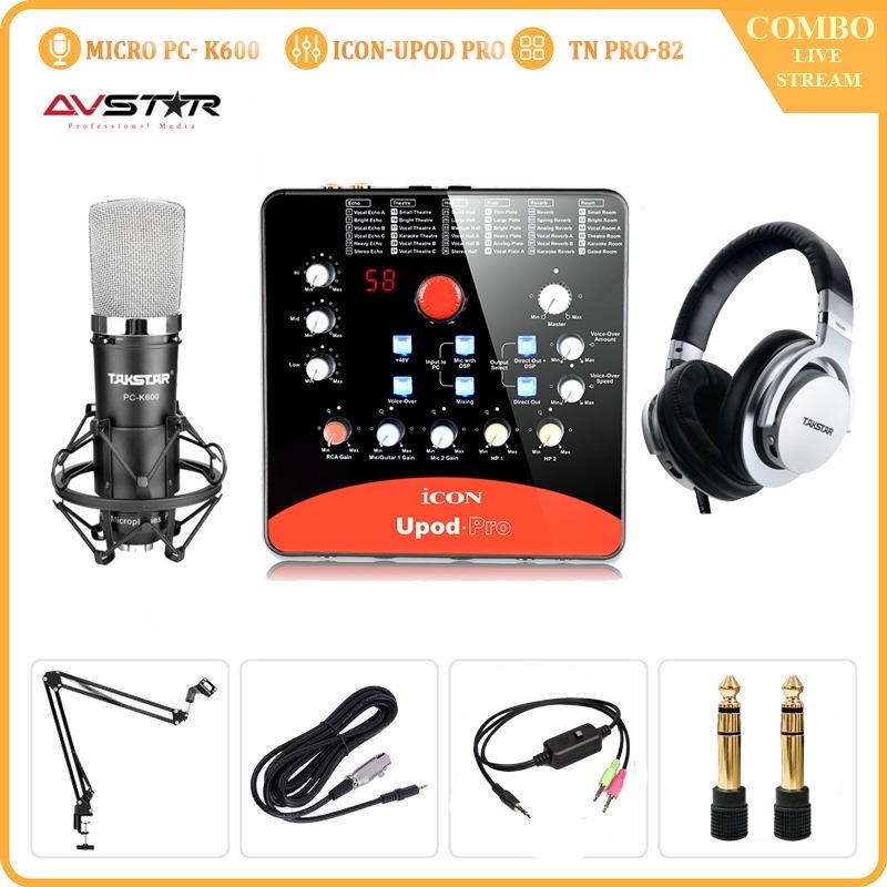 Thiết Bị Âm Thanh > Micro thu âm || Bộ Mic Livestream Hát Karaoke Đầy Đủ Sound Card Icon Upod Pro, Mic Takstar PC-K600, Tai Nghe Takstar PRO 82 & Phụ KiệnCòn hàng