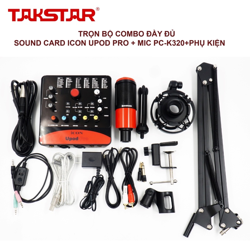 Bộ Mic Livestream Hát Karaoke Chính Hãng Đầy Đủ Sound Card Icon Upod Pro, Mic Takstar PC-K320 & Phụ Kiện Bảo Hành 1 Năm