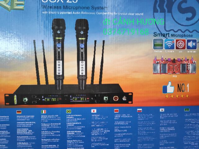 Micro shur re UGX 23 được trang bị bốn an ten , cho khả năng thu sóng cực xa , ae làm show không phải lo tình trạng hụt sóng