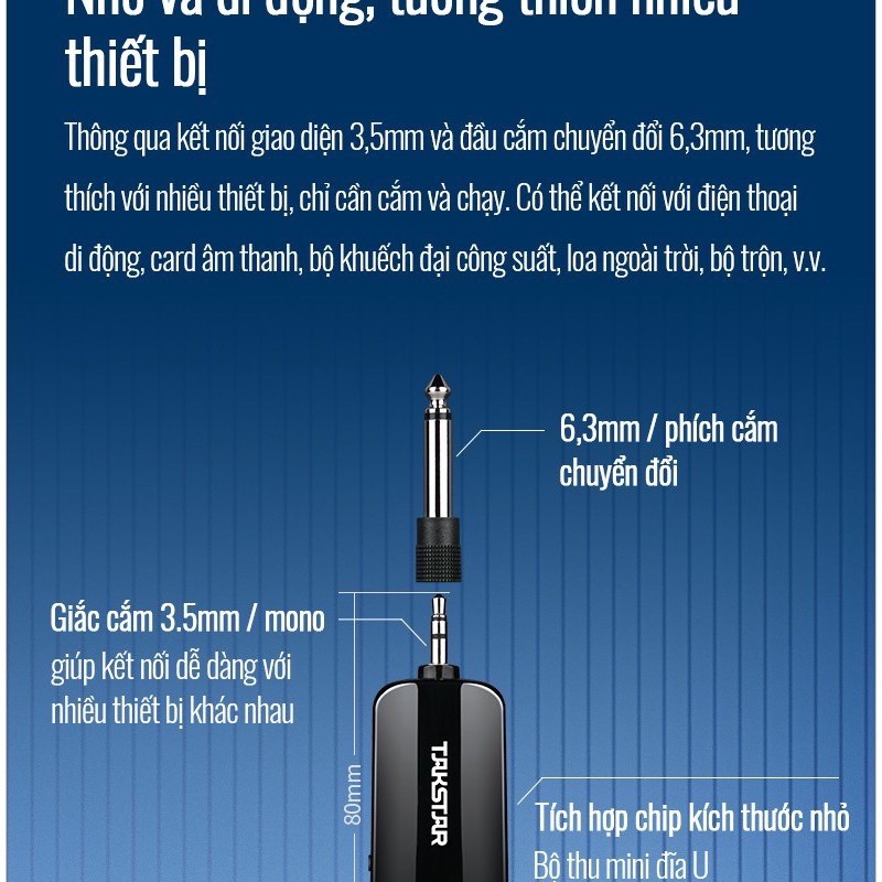 Được thiết kế để phát sóng trực tiếp, hát karaoke, diễn thuyết và các dịp khác, được sử dụng rộng rãi trong card âm thanh, bộ khuếch đại công suất, loa ngoài trời và các thiết bị khác; • Công nghệ không dây UHF được sử dụng để loại bỏ các kết nối dây phức tạp, do đó việc phát sóng trực tiếp, hát karaoke và bài phát biểu không còn bị hạn chế; • Công nghệ khớp tần số tự động, dễ vận hành, chống nhiễu mạnh, khoảng cách sử dụng khoảng 25 mét trong khu vực thoáng; • Có thể điều chỉnh 50 kênh để tránh nhiễu tần số, hỗ trợ nhiều bộ micro cùng lúc; • Micro có màn hình LED hiển thị, dễ vận hành • Việc sử dụng thông tin trực quan hơn; • Bộ thu tích hợp một chip gói nhỏ, di động và nhỏ gọn, plug and play, thuận tiện để kết nối với các thiết bị âm thanh khác nhau; • Chức năng tắt tiếng một phím, có thể nhanh chóng ngắt tín hiệu âm thanh micrô theo tình hình thực tế; • Phân phối φ6 Đầu cắm chuyển đổi .3mm, thuận tiện để kết nối với thiết bị âm thanh có giao diện φ6.3mm.