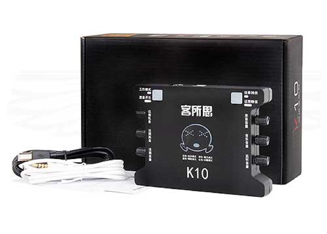1 Sound Card K10 và dây nguồn USB, dây lấy nhạc đi kèm