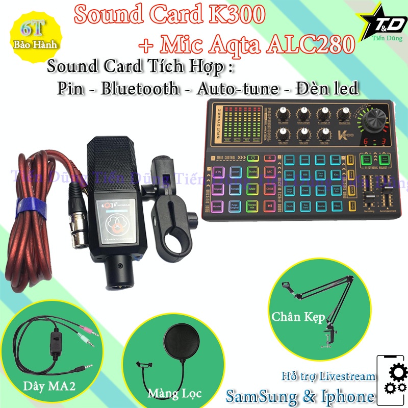 Thiết Bị Âm Thanh > Micro thu âm || Bộ Mic thu âm Aqta ALC280 sound card k300 dây livestream MA2 chân kẹp màng lọc sound card k300 có autu tune bluetoothCòn hàng