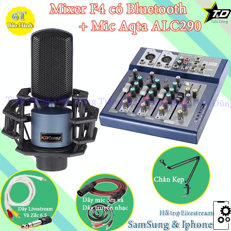 Thiết Bị Âm Thanh > Micro thu âm || Mic thu âm Aqta ALC290 mixer F4 bluetooth chân đế dây livestream chế dây truyền nhạc dây mic 3m zắc 6.5Còn hàng
