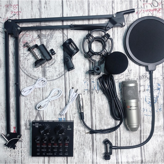 Máy tính & Laptop > Linh Kiện Máy Tính > Bo Mạch Âm Thanh || Mic thu âm AQTA BM900II sound card V8 chân màng- Bộ live stream bm900 ii sound card v8 có auto-tune tiện sử dụngCòn hàng