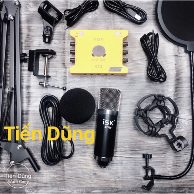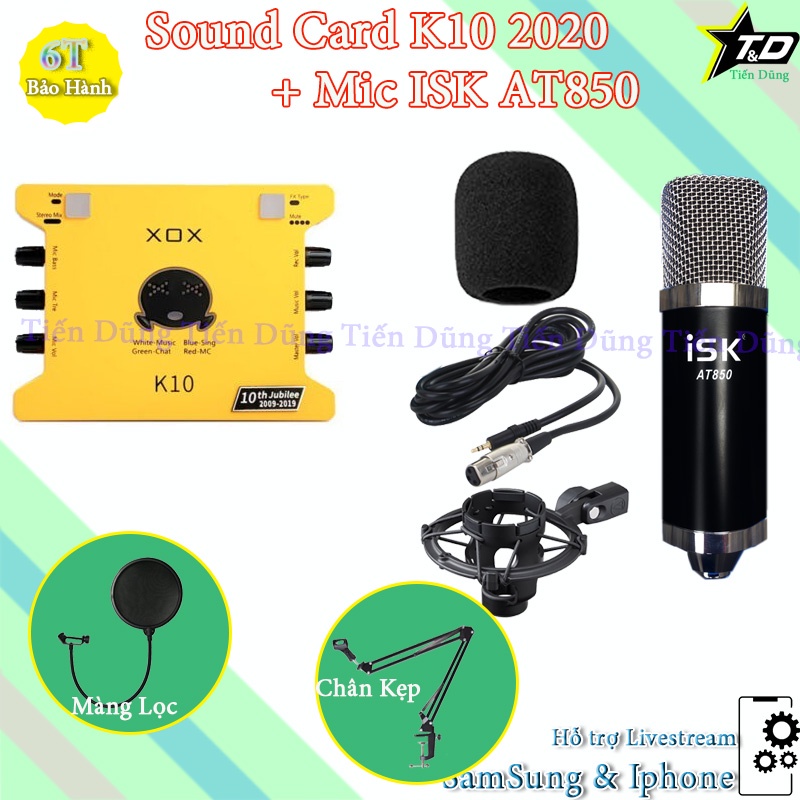 Bộ mic thu âm AT850 Sound card k10 2020 bản mới nhất dòng XOX chân màng - Bộ livestream đầy đủ đã kèm dây live stream.1. TRỌN BỘ MIC THU ÂM ISK AT850