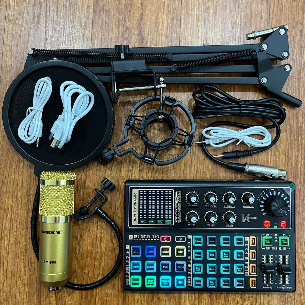 Bộ Mic Thu Âm Bm900 Sound Card k300 Dây Livestream Chế - Trọn Bộ Thu Âm Sound Card k300 Hỗ Trợ Auto tune Bluetooth
