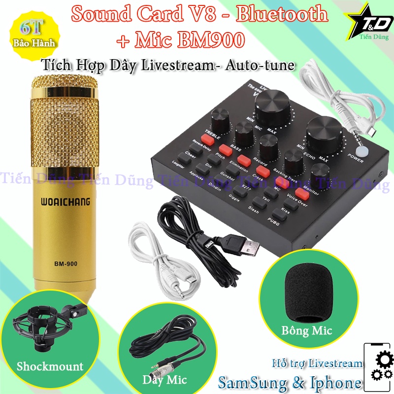 Bộ Mic Thu Âm BM900 Sound Card V8 tiếng anh có auto-tune có Bluetooth - Bộ live stream là đã có thể thu âm livestream