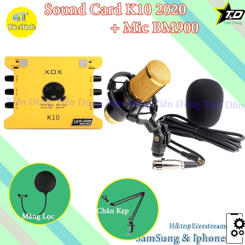 Thiết Bị Âm Thanh > Micro thu âm || Bộ mic thu âm BM900 Sound Card XOX K10 2020 bản tiếng anh chân màng- combo live streamCòn hàng