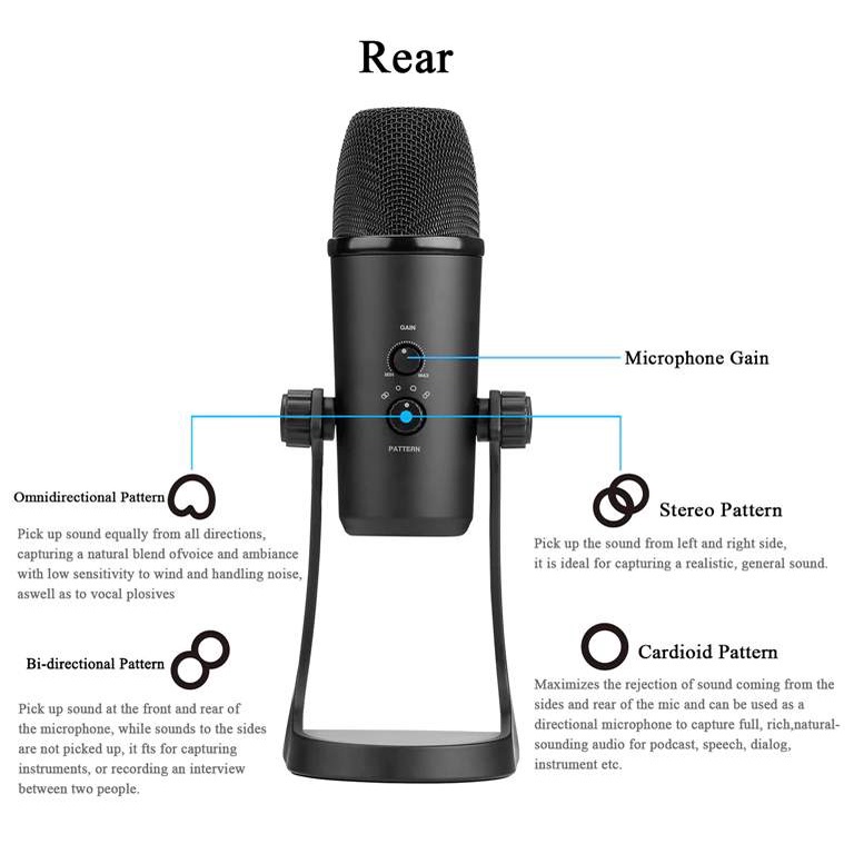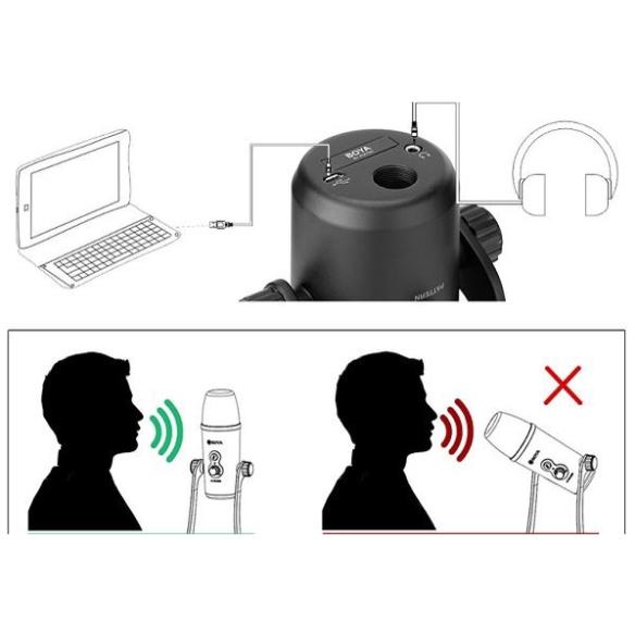 - Mic này có thể thu âm thanh của bạn ở độ phân giải lên tới 16 bit / 48 kHz và nó có tính năng điều khiển đạt được, nút tắt tiếng, đầu ra tai nghe có độ trễ bằng không.